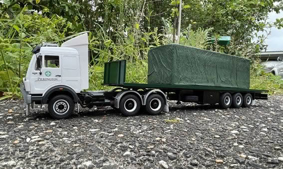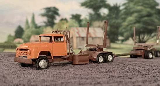 I find artificially raising the model truck onto a surface where you can correctly place and align distant scenery within the frame is the first step. This also allows you to align the lens of the camera at the correct capture height; the height that you would effectively hold the camera at if the model truck was enlarged to life-size scale, and you were standing alongside it.