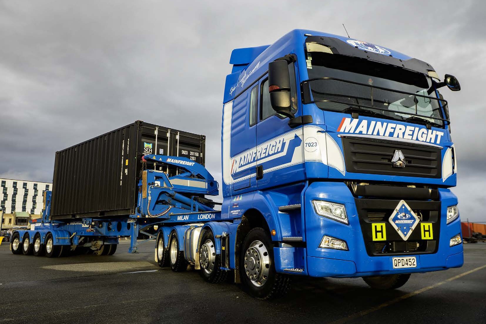 Ellesmere Transport can trace its roots back to the late 1930s; today owned and run by the Righton family. It operates from two depots, Leeston, just south of Lake Ellesmere, and Dunsandel, 30km south of Christchurch on SH1. Whether you’re coming from north or south, it’s hard not to spot the brightly painted blue and yellow cabs and bright red stock crates lined up on the south end of the town.