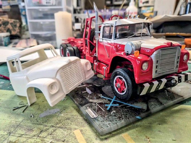 RG Woolston Logging Contractors of Rotorua was one such operator that had a varied fleet of Internationals at this time. And the iconic F1800D, running Mills-Tui logging gear, featured in this lineup. “They were a cool-looking truck in a real cool era of logging here in New Zealand, and they were big gear in their day as well, running 6V53 Detroit Diesels and Roadranger gearboxes. They were right up there with the LW Kenworths, Scammells and the others that were available back then. I have built a few loggers from this era now, so when I saw these F1800D cabs offered for sale on Facebook, I just had to grab some and add to this collection,” says Gordon.