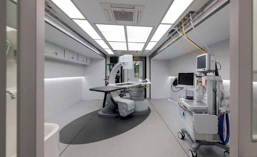 theatre lights, anaesthetic services and a full theatre air quality system. There is also an onboard first-stage recovery room, along with instrument reprocessing facilities. The unit has been operating for 23 years and carries all the equipment and instruments required to perform low risk day-stay procedures.