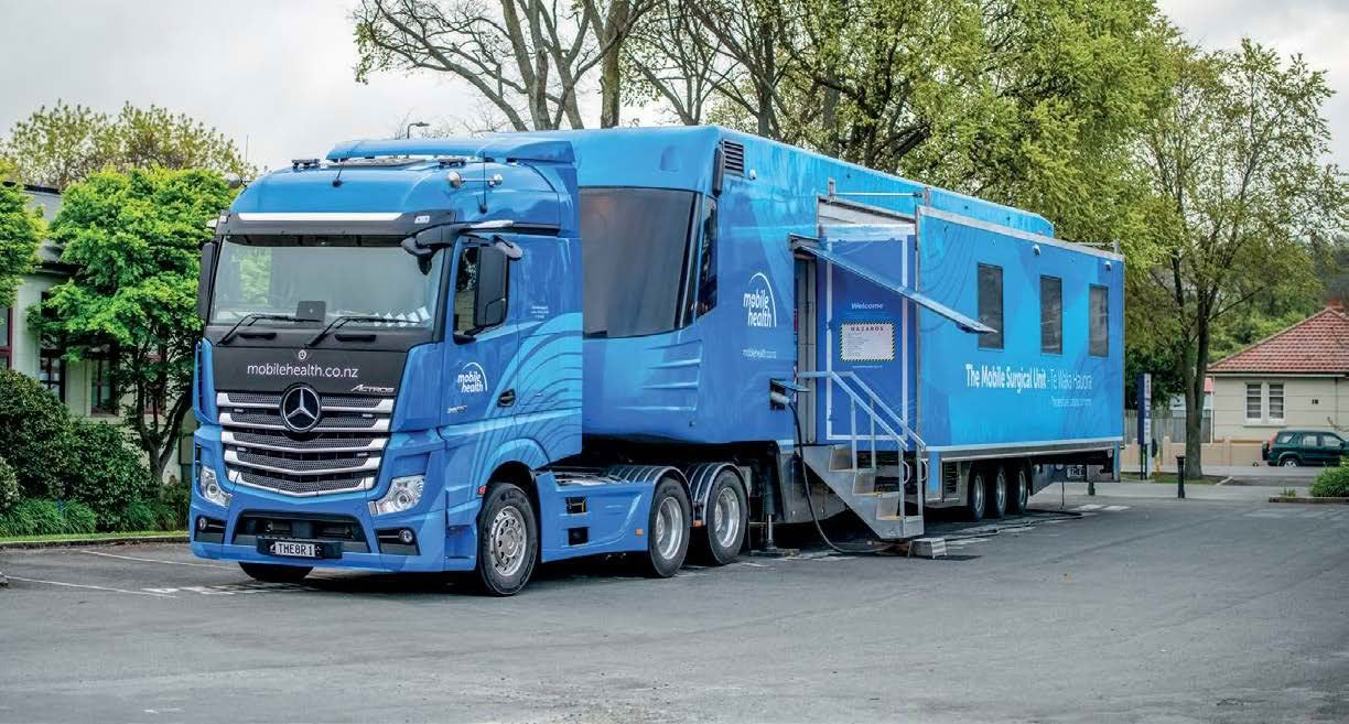 If you need minor surgery, a scan, or even your kidney stones blasted, you may be treated on one of Mobile Health Group’s specialised units towed around the country by a fleet of Mercedes-Benz trucks.
