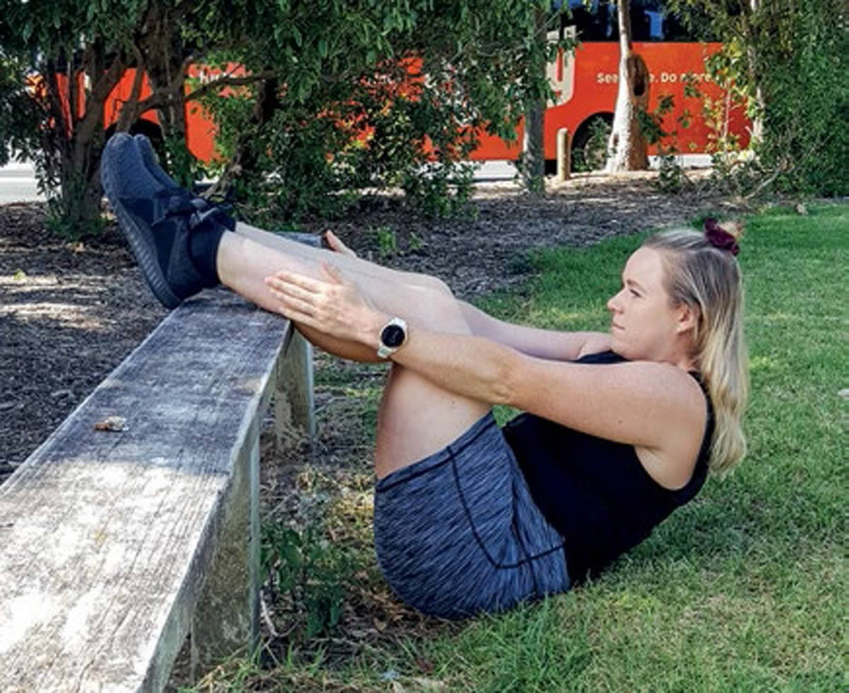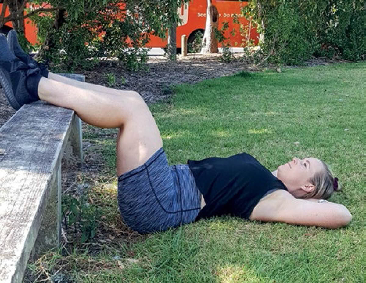 Once you’ve found a nice shady spot with a sturdy park bench, let’s take you through a straight-forward, full-body workout. Take along a towel/mat and water bottle for comfort.