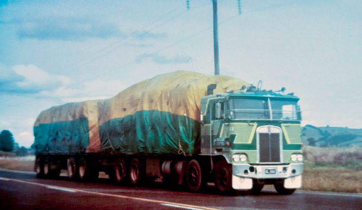 Before the arrival of early curtainsiders, ‘if it fits, it ships’ general freight carriers all used tarps of varying fabrics to protect their loads from our wet climate. The art of securing a mixed load and then covering it neatly was part of the day’s professionalism.