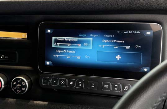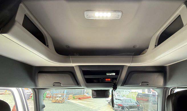 | Cab interior: | Driver and passenger air-suspended seats. Radio with Bluetooth, AUX input and USB connector. TV, under-bunk fridge, optimised idle HVAC, premium insulation. LED ambient lighting. Digital dash with 12.3in driver’s display and 10in infotainment touchscreen. |