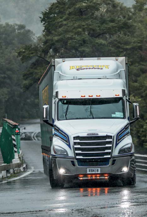 Jimmy and the Cascadia had been on the road only about a month when we met him, and having driven 11,000km, the truck was still freeing up, and he was still acclimatising to it. Of course, the only way either of those can be accomplished is to rack up the miles, and a South Island freight run is just perfect for that.